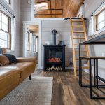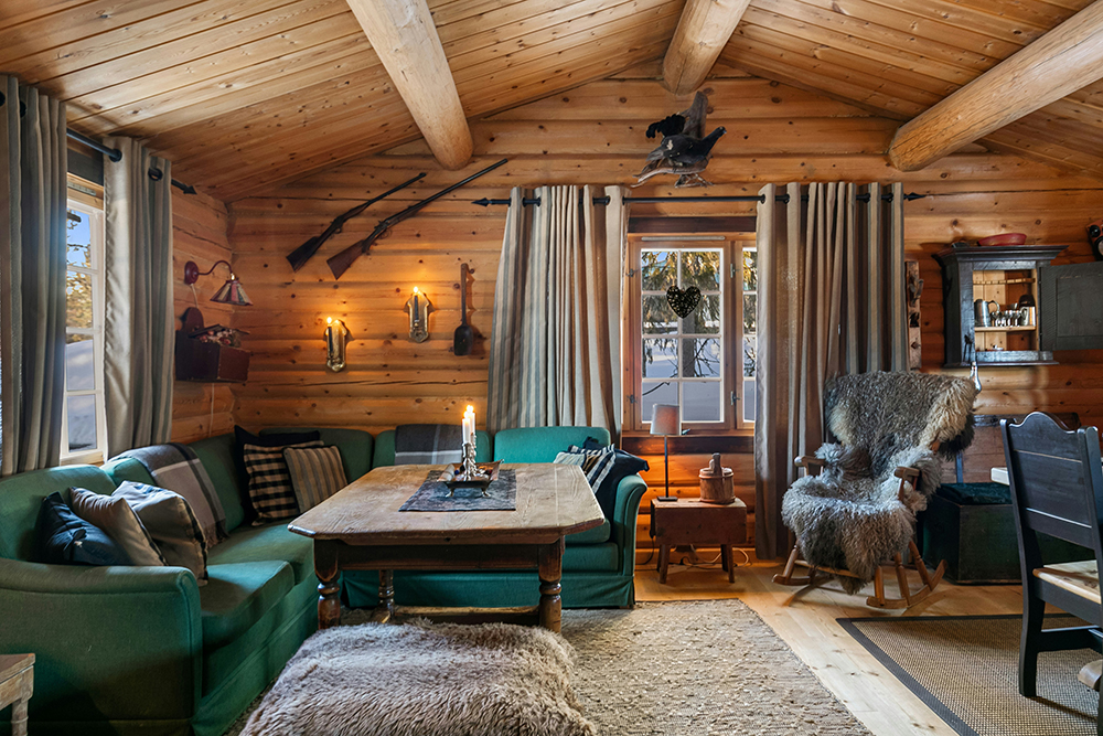 Exposed timber beams remain a hallmark of cabin-inspired interiors, but rather than dominating a room, they are often paired with sleek finishes and neutral walls to balance warmth with simplicity. Stone features, from fireplace surrounds to accent walls, add texture and a sense of permanence, grounding spaces while reflecting the natural environment outside. Large windows are key to cabin architecture, inviting in the soft winter light and framing views of frosted landscapes, allowing the interior to feel connected to the season.